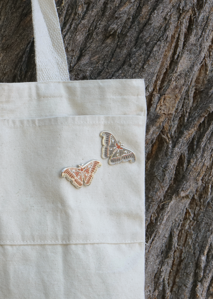 This little pollinator is a must have for any plant-enthusiast. Add it to your bag, blazer lapel, hat, or shirt collar to complete your botanical look. Makes for the perfect statement accessory or gift for someone special. Grab our Cecropia moth and make it a pair!